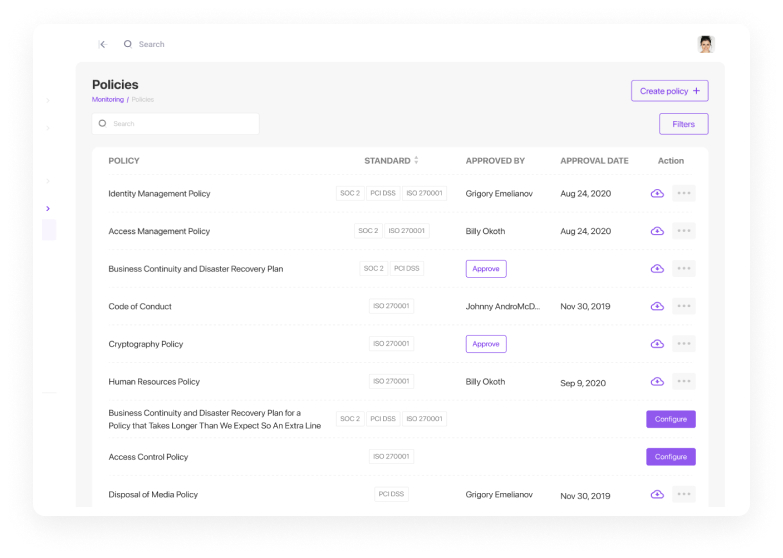 Create customized auditor-approved policies and documents for any industry, infrastructure, applications, and company size. With Secfix, you can retrieve policy confirmations from employees at any time.